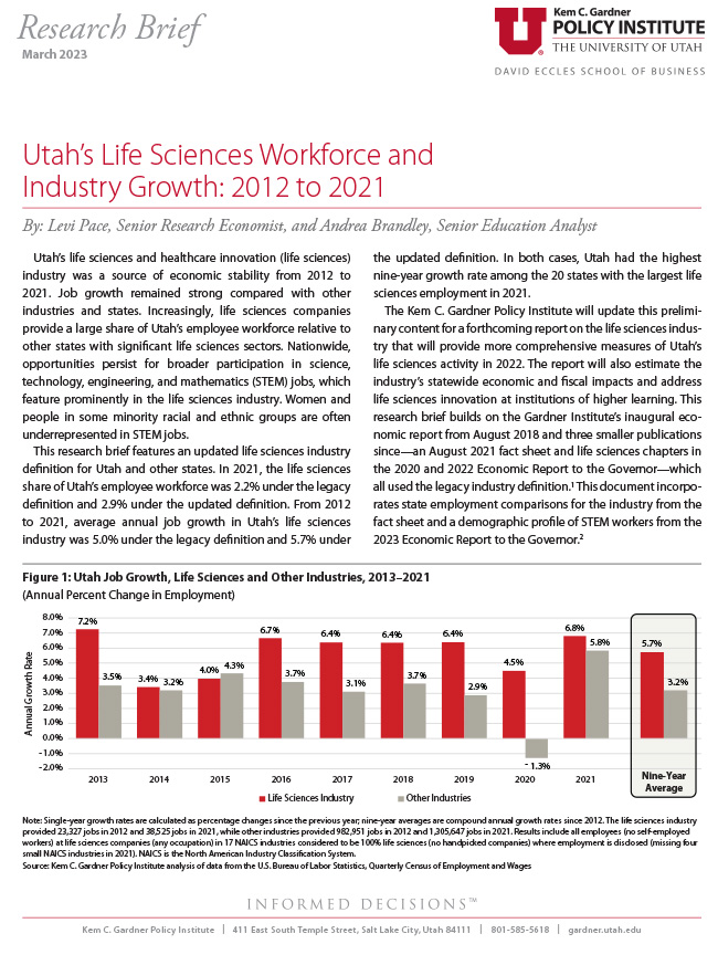 The 2023 update to the prior Kem C. Gardner report demonstrates how favorably Utah’s life sciences industry compares to the rest of the nation. […]