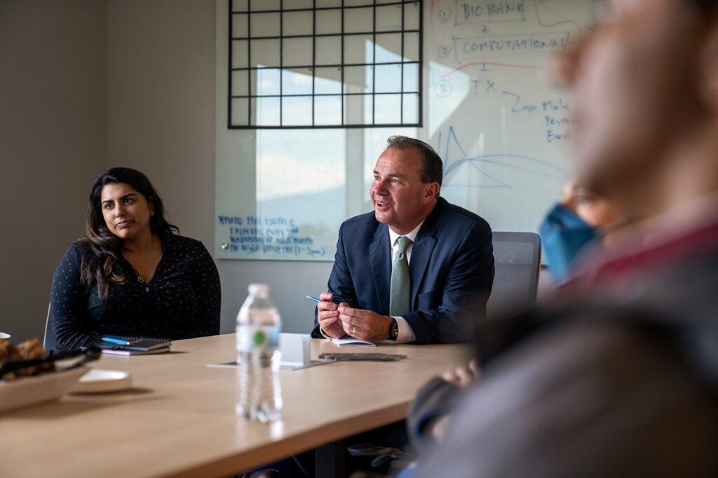 U.S. Senator Mike Lee (R-UT) on August 15 spent the day connecting with Utah’s life sciences community, known as the BioHive, touring facilities at BD, IONIQ Sciences, SEEK Labs and Carterra. His schedule also included a tour of Altitude Lab in the University of Utah’s Research Park where he led a roundtable discussion with nearly a dozen CEOs of bio startups.